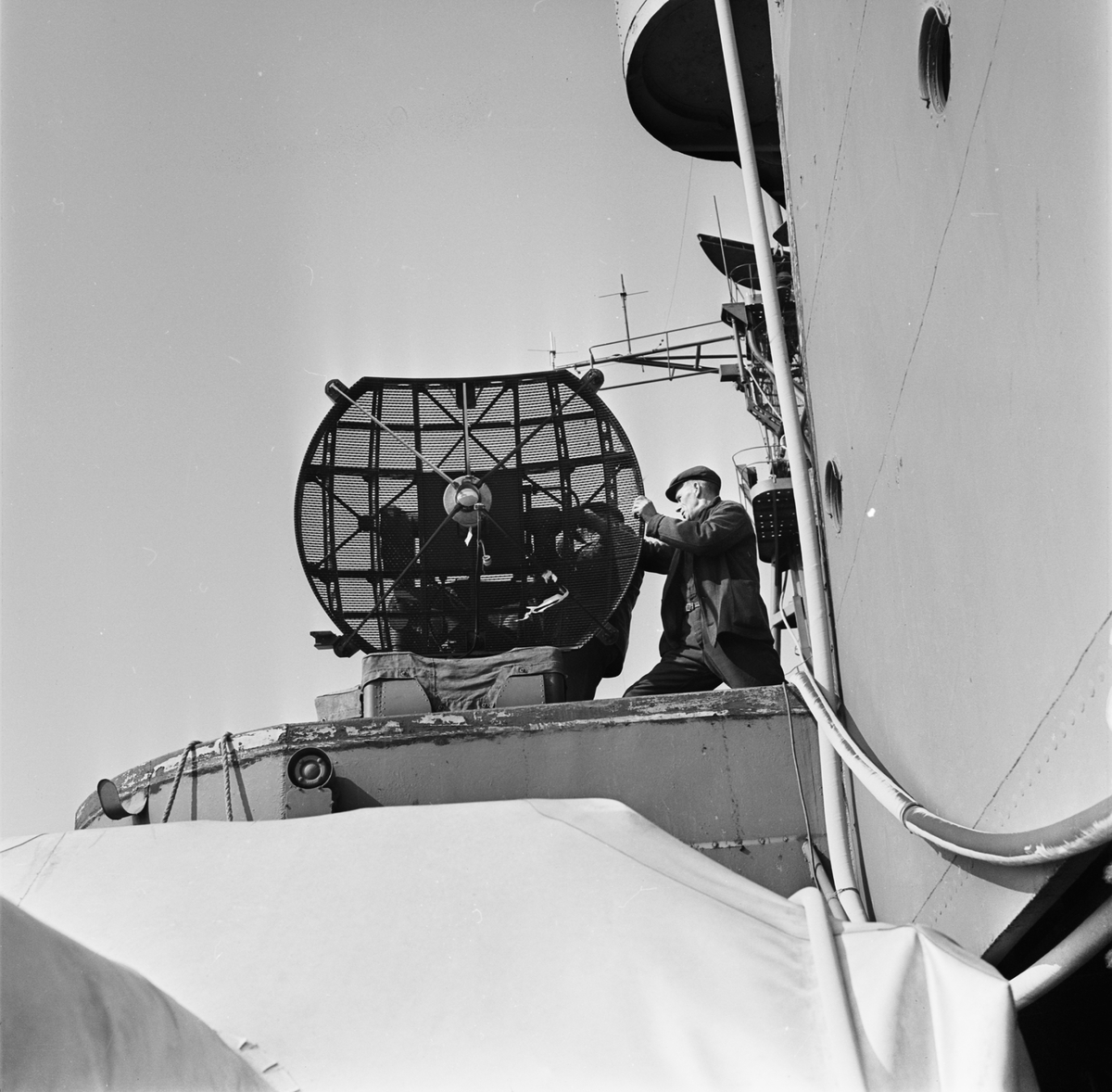Titel: Lyft av radarantenn från Kryssaren Göta Lejon