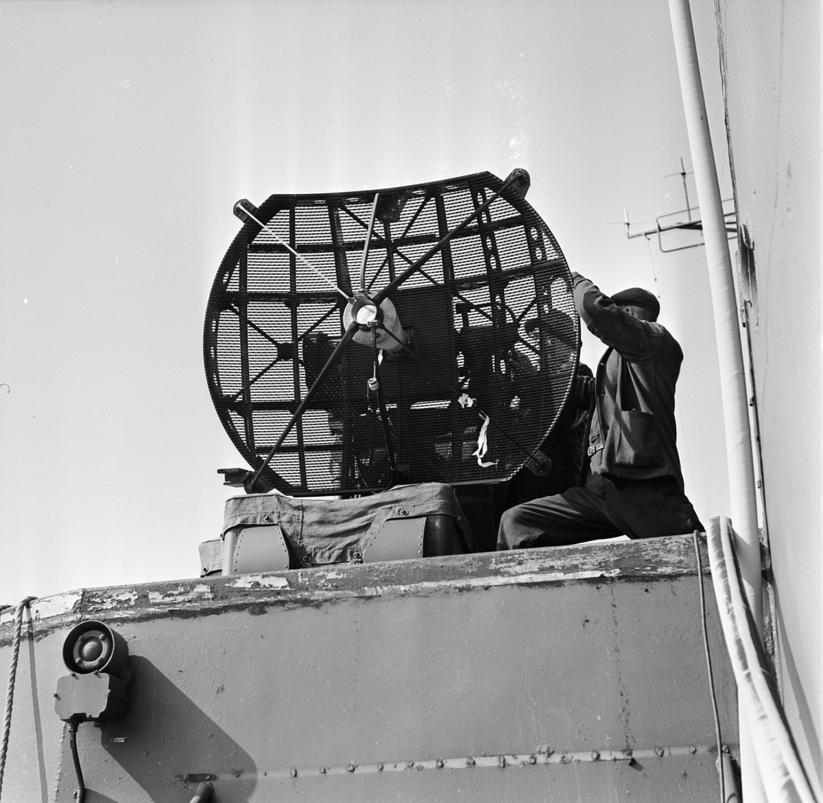 Lyft av radarantenn från Kryssaren Göta Lejon