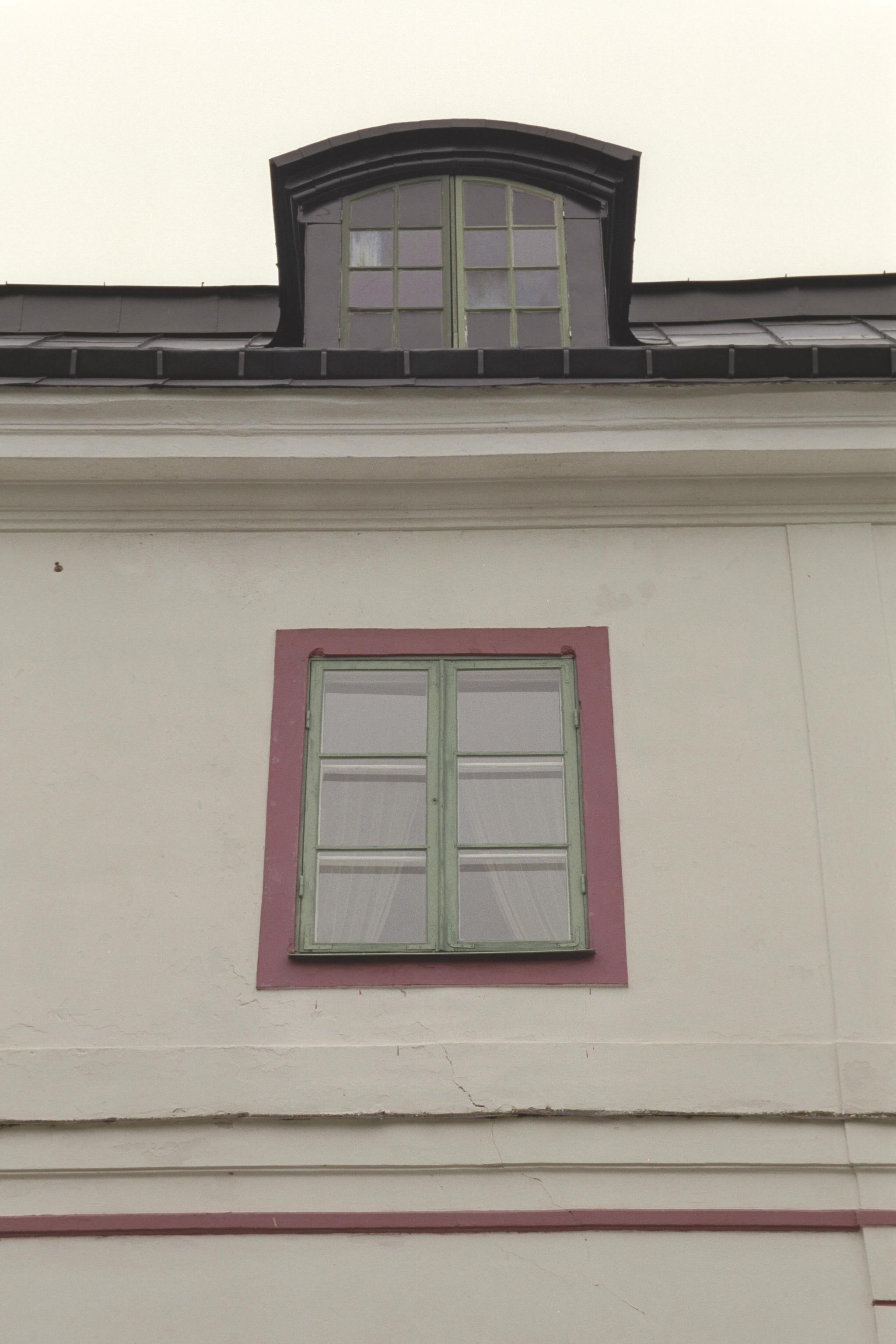 Huvudbyggnadens östra fasad, takkupa, andra axeln från höger.