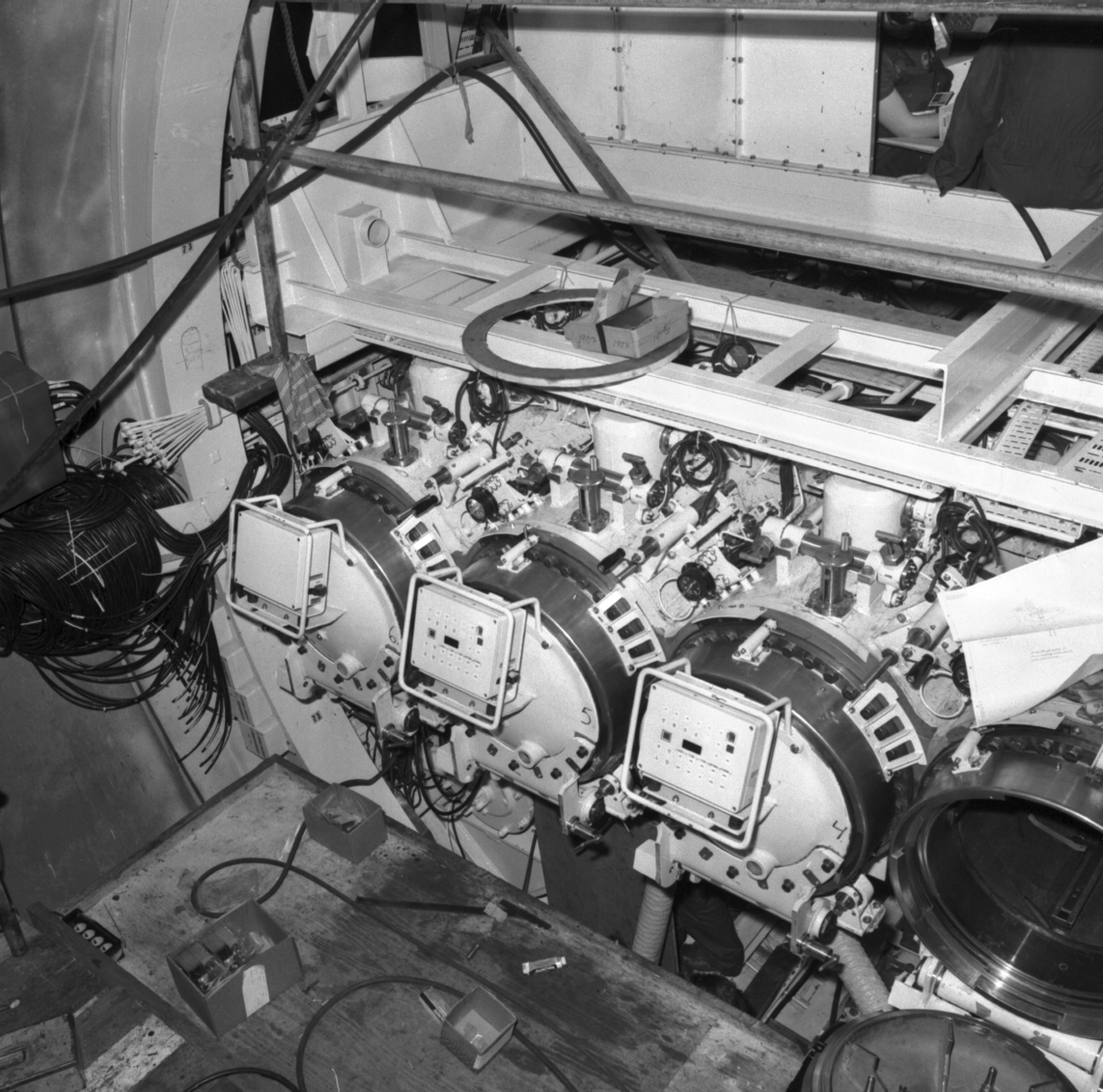 :: Ubåtssektioner till ubåt typ Västergötland, i skrovhallen\\\\anm. neg ingår i en serie om 36 st varav 2 st scannats, detta är neg nr V 100491/gp