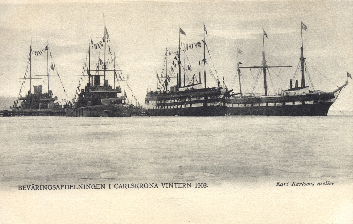 Vykort på beväringsavdelningen i Karlskrona vintern 1903