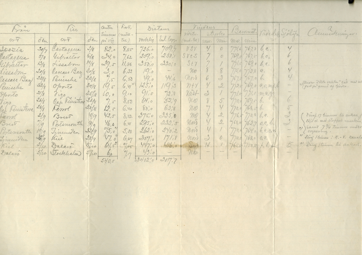 Ubåten HVALENs reseschema från Italien till Sverige. La Spezia-Cartagena-Gibraltar-Lissabon-Cesares bay-Peniseke-Oporto-Vigo-Cap Finisterre-Ferrol-Brest-Portsmouth-Ymuiden-Kiel-Dalarö-Stockholm.