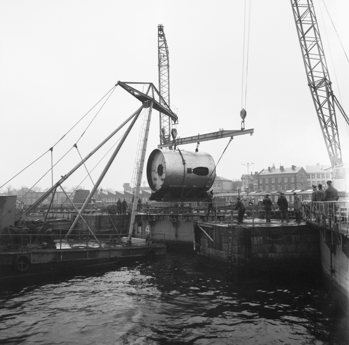 Titel: Ub U 4 i docka sektion till skrovet (lyft)