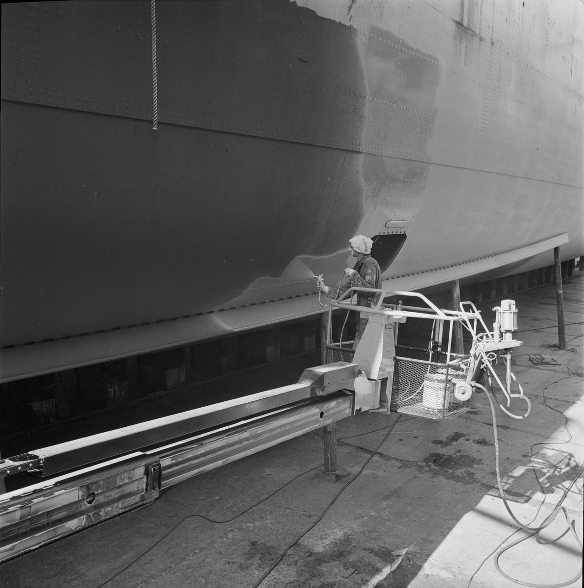 Titel: Sprutmålning av jagare i Oscarsdockan
