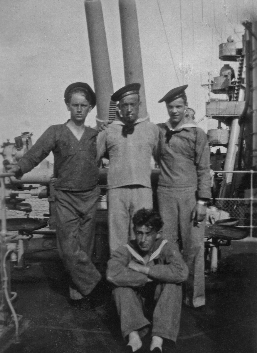 Fyra värnpliktiga sjömän ombord på okänt fartyg.
