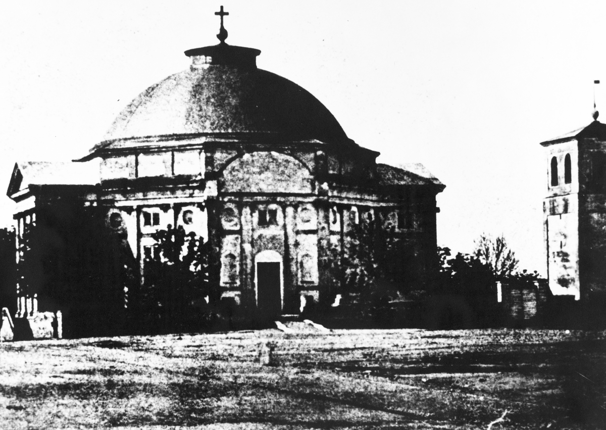 Stortorget med tyska kyrkan, t.h församlingens klockstapel som revs 1862, omkring 1850-60 talet.