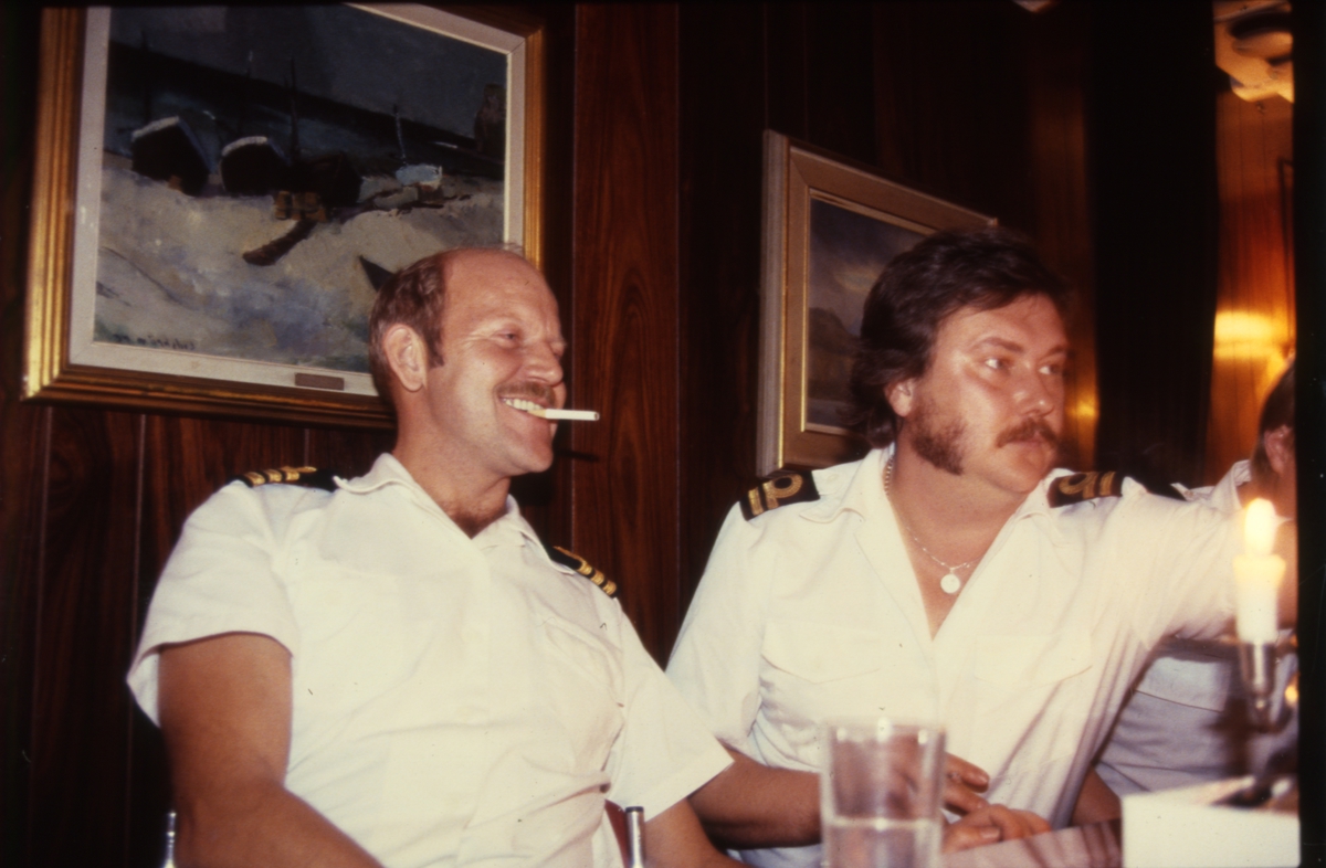 Sista krigsförbandsövningen på jagaren Hallands långresa 1982. Kapten och Löjnant i gunrummet