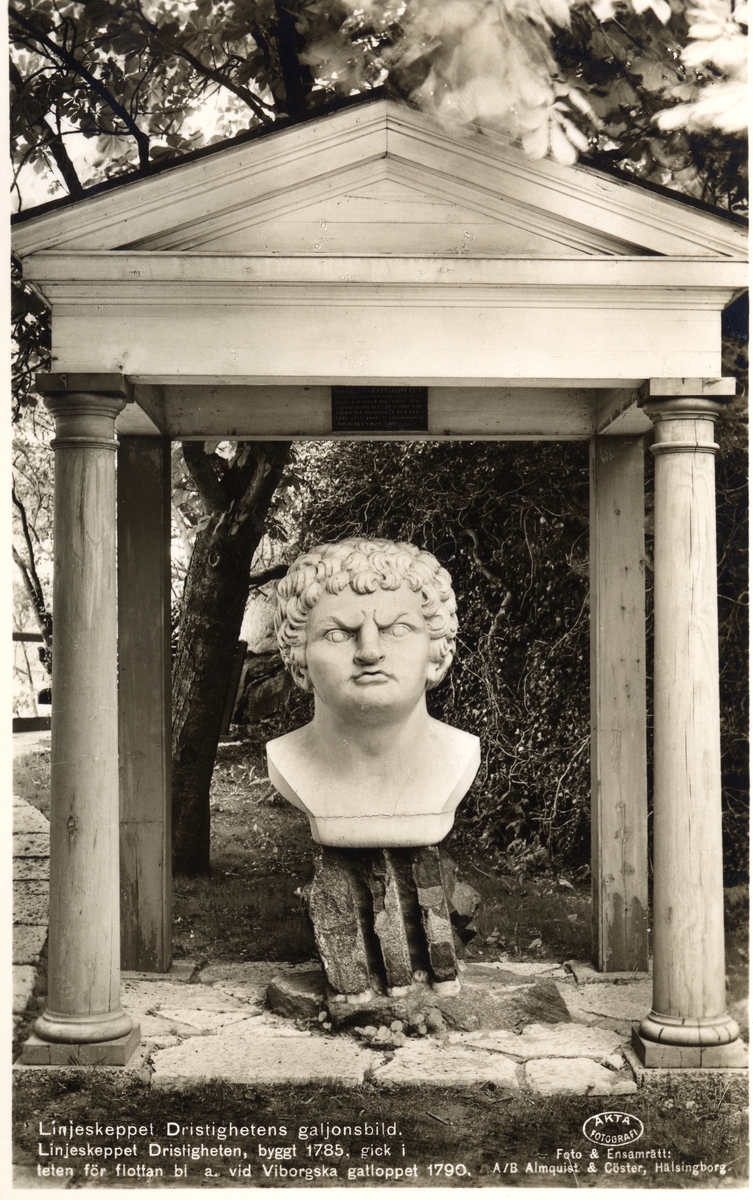 Vykort på galjonsbilden Dristigheten. Linjeskeppet Dristigheten byggt 1785 gick i täten för flottan bl a vid Viborgska gatloppet 1790.