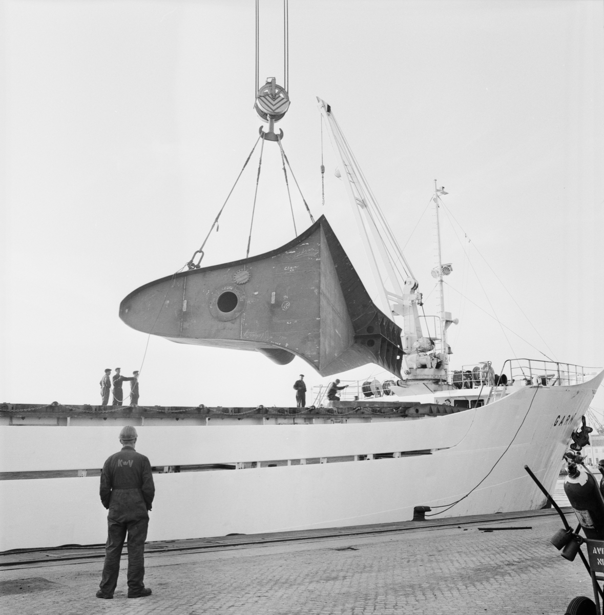 Lyft av akterstäv från verkstadskaj M/s Garm