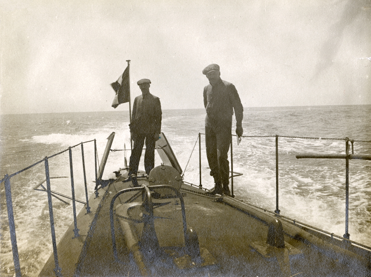 Personal från varvet Fiat-San Giorgio i Spezia tar en provtur med Ubåten HVALEN.