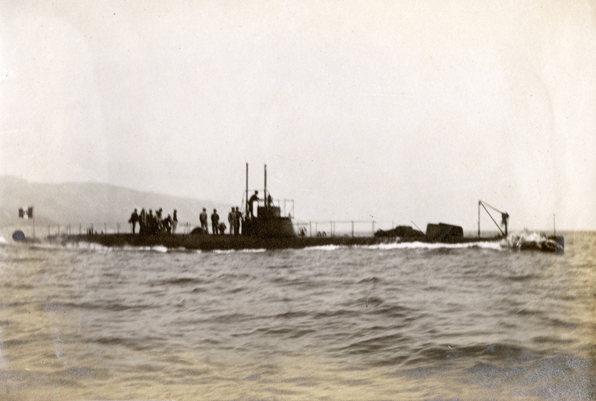 Titel: Personal från varvet Fiat-San Giorgio i Spezia tar en provtur med Ubåten HVALEN.
