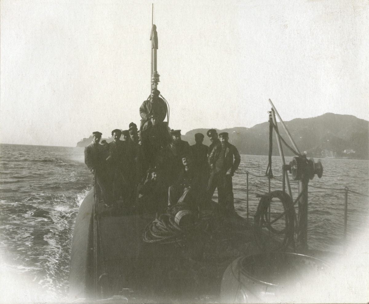 Provtur med ubåten HVALEN. Gruppbild för om tornet.