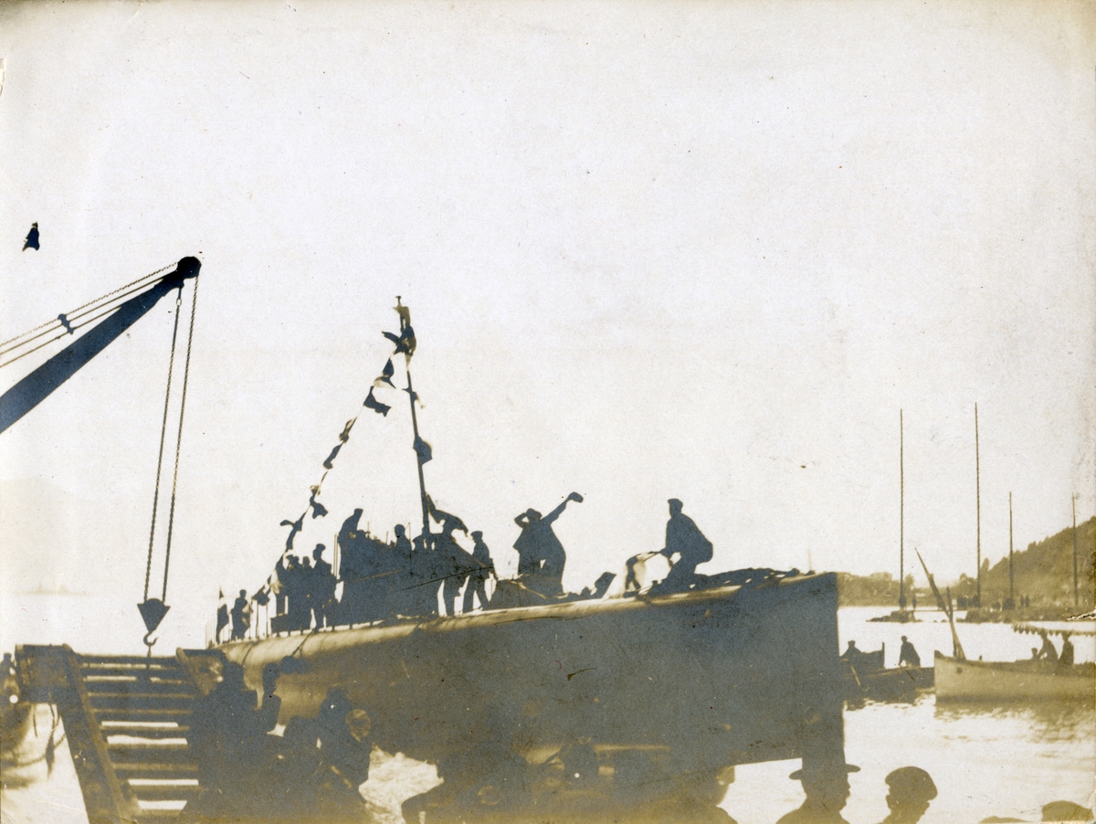 Sjösättning av ubåten HVALEN 16:e Februari 1909.