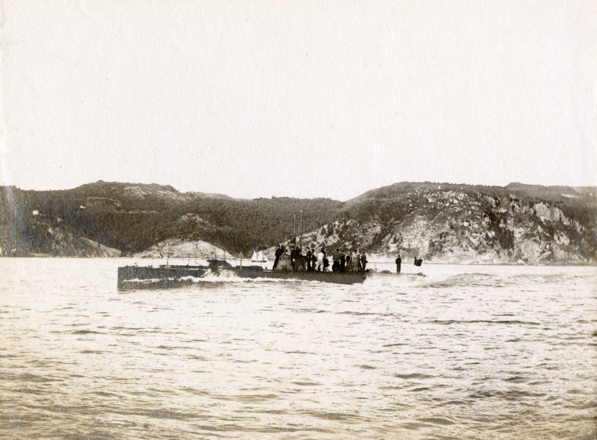 Personal från varvet Fiat-San Giorgio i Spezia tar en provtur med Ubåten HVALEN.