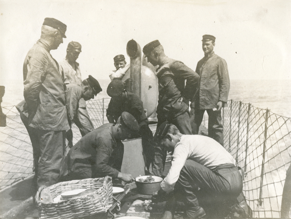 Skaffning förbereds på däck ombord ubåten HVALEN.