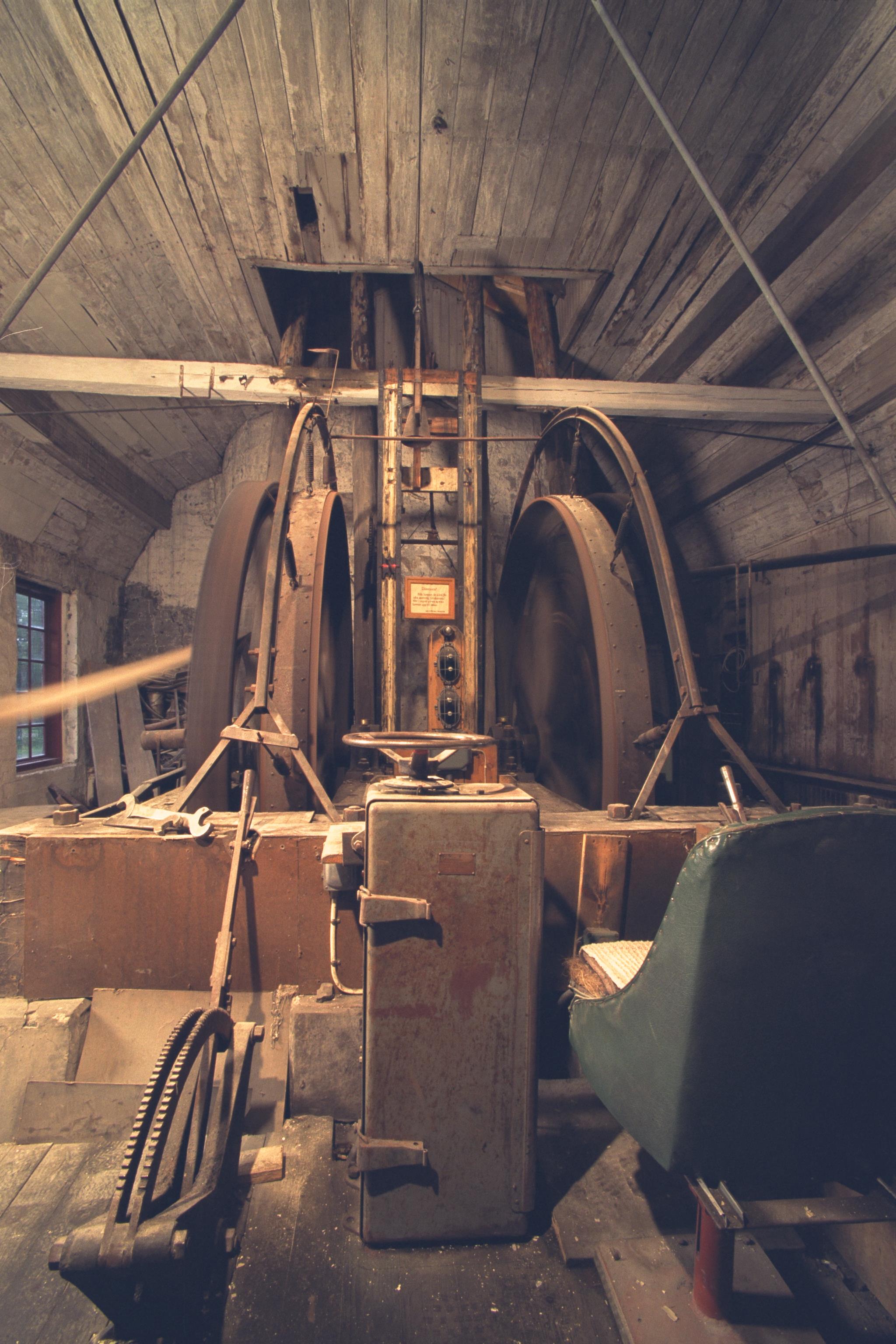 Interiör från gruvlaven. Maskinhall för uppfordringshissarna