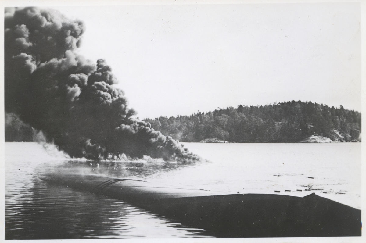 Titel: Jagaren liggande på sidan vid Hårsefjärden.