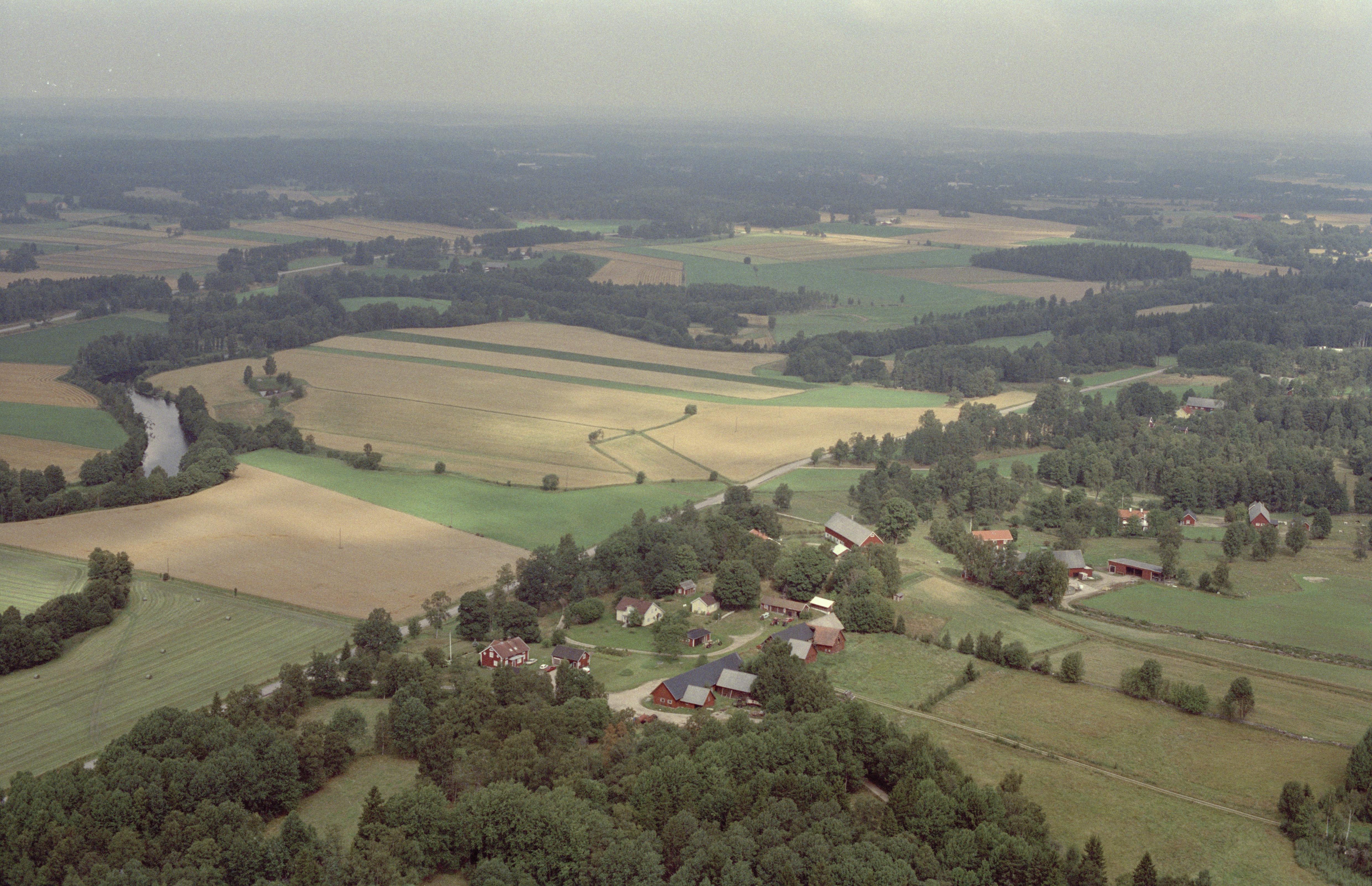 Fornlämningstät område i ån Lagans dalgång vid Trotteslöv, Össlöv och Fallnaveka. Bytomt RAÄnr Berga 211:2-4 m.fl. vid bildens mitt. Bilden är tagen mot (väderstreck): NV