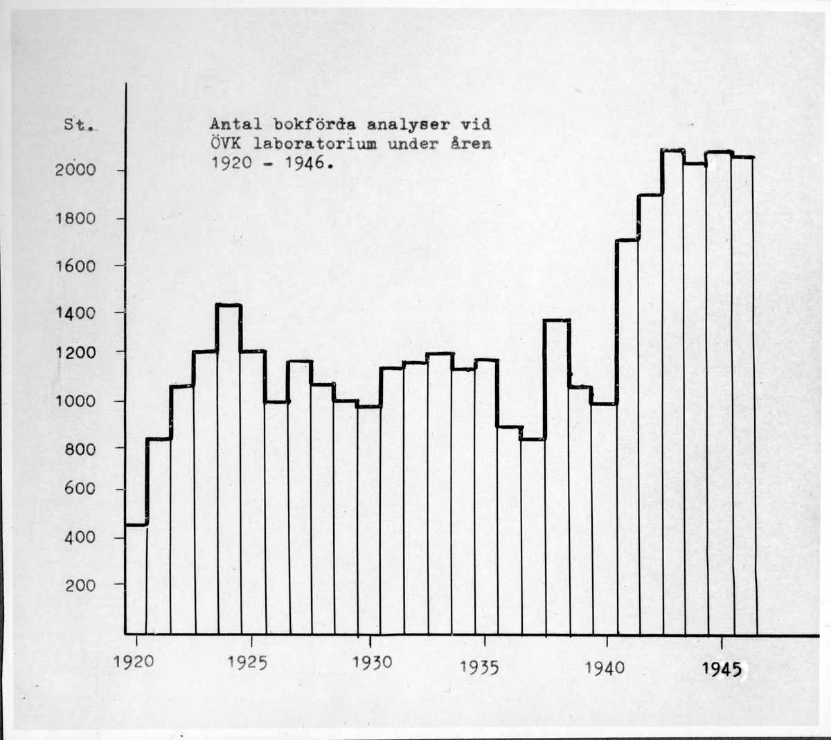 Antalet bokförda analyser vid örlogsvarvets labratorium under åren 1920-1946