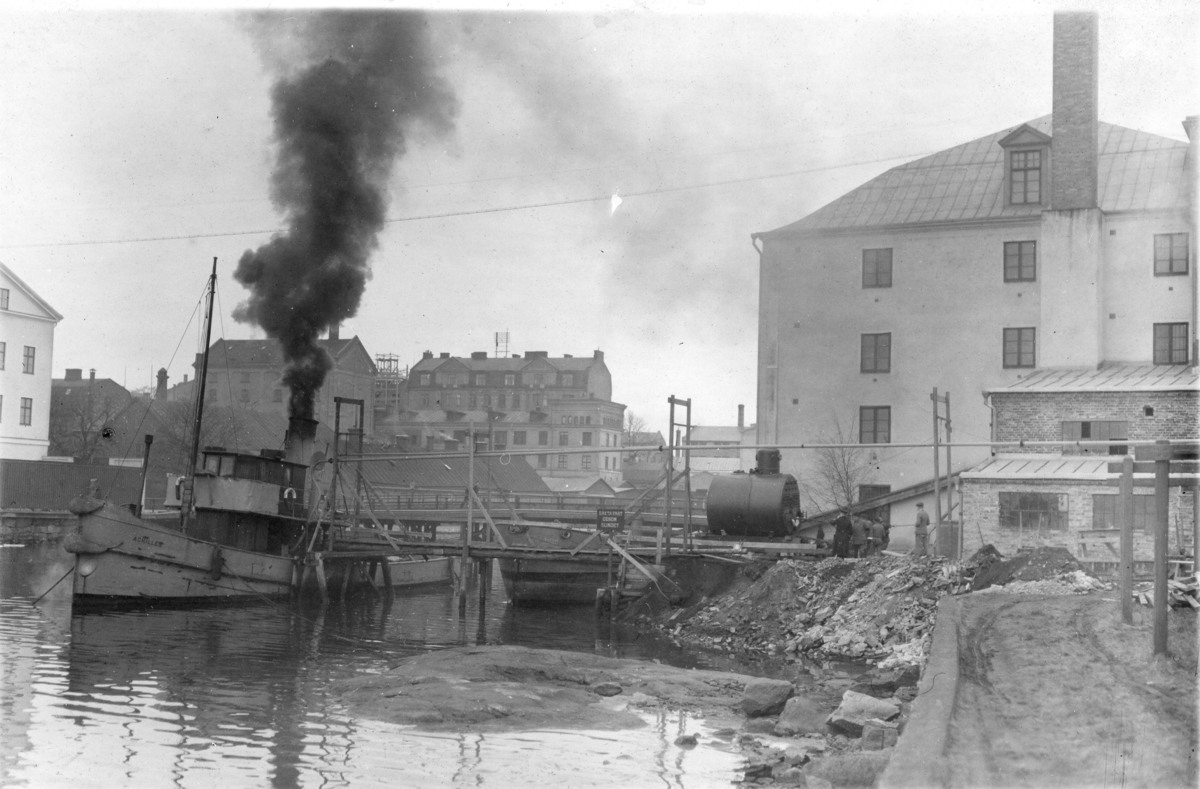Ångpanna å stumholmen bogserbåten Achilles till vänster.