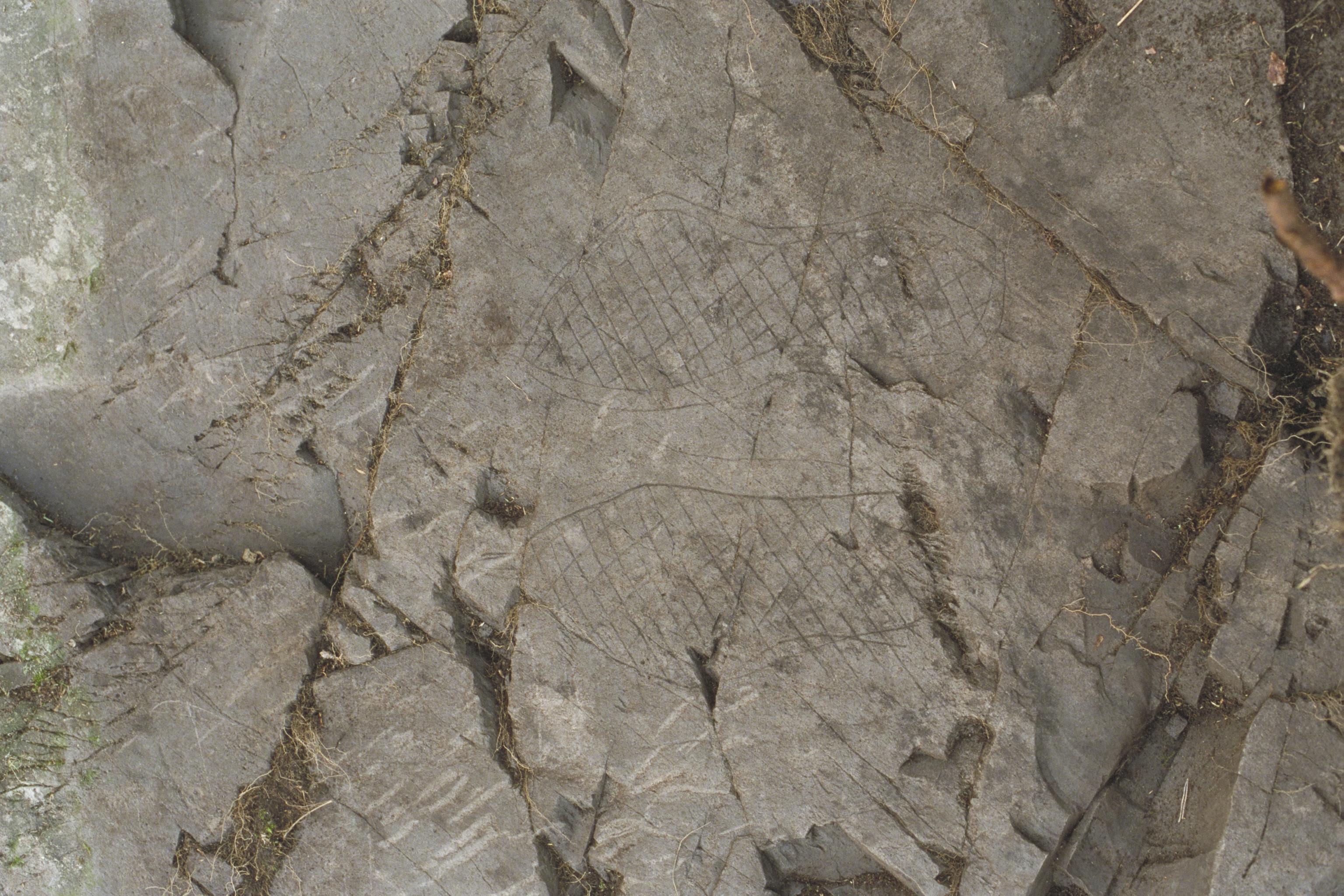 RAÄ-nummer Tisselskog 7:3. Fotavtryck, troligen moderna ristningar.