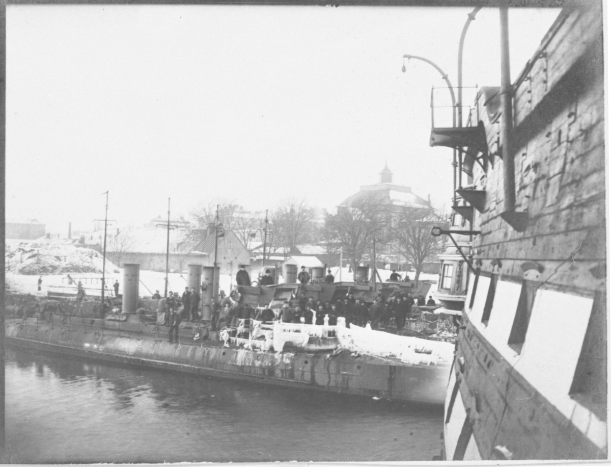 Logementsfartyg Stockholm med torpedbåtar