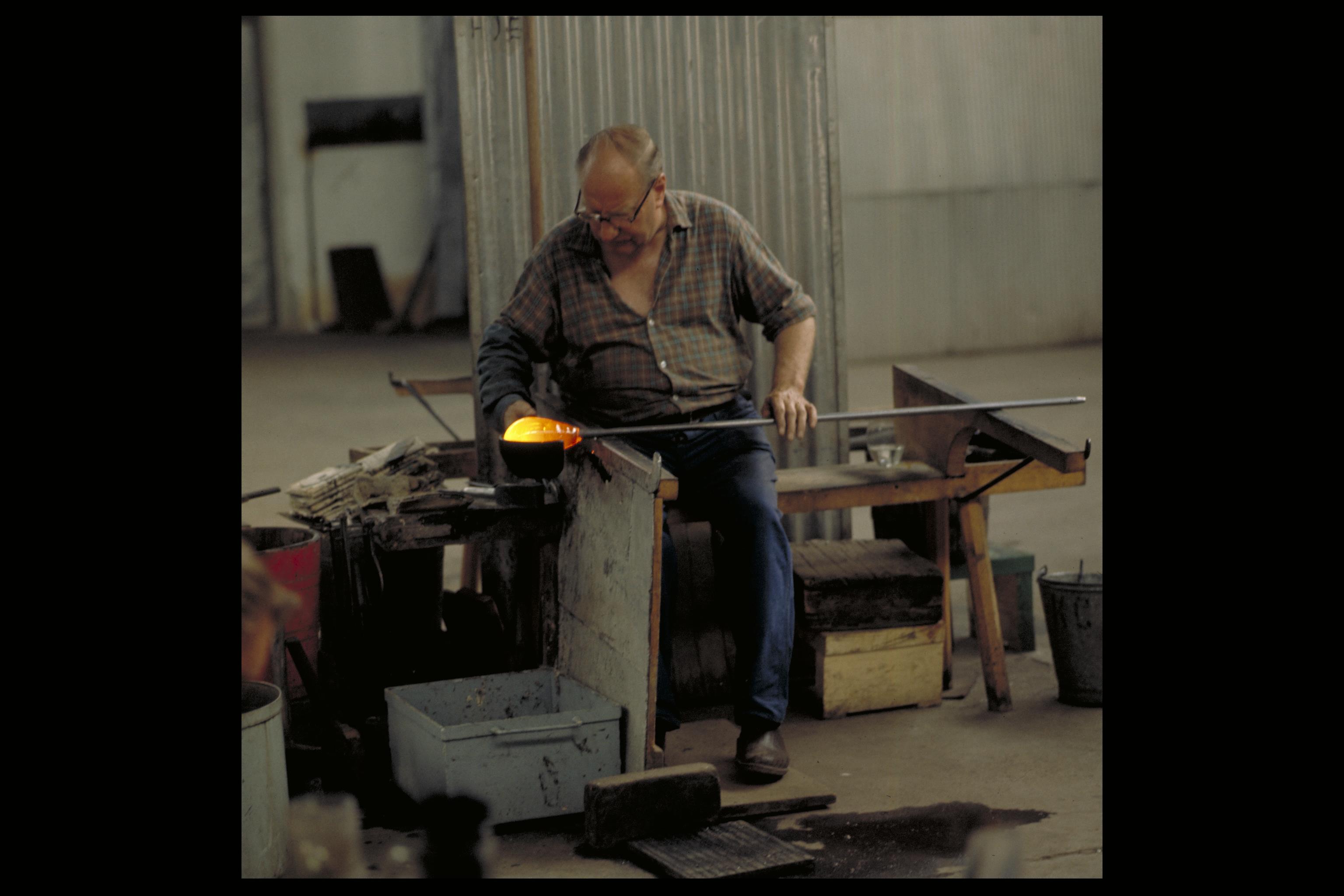 Glastillverkning. Bilden troligen från slutet av 1960-talet.