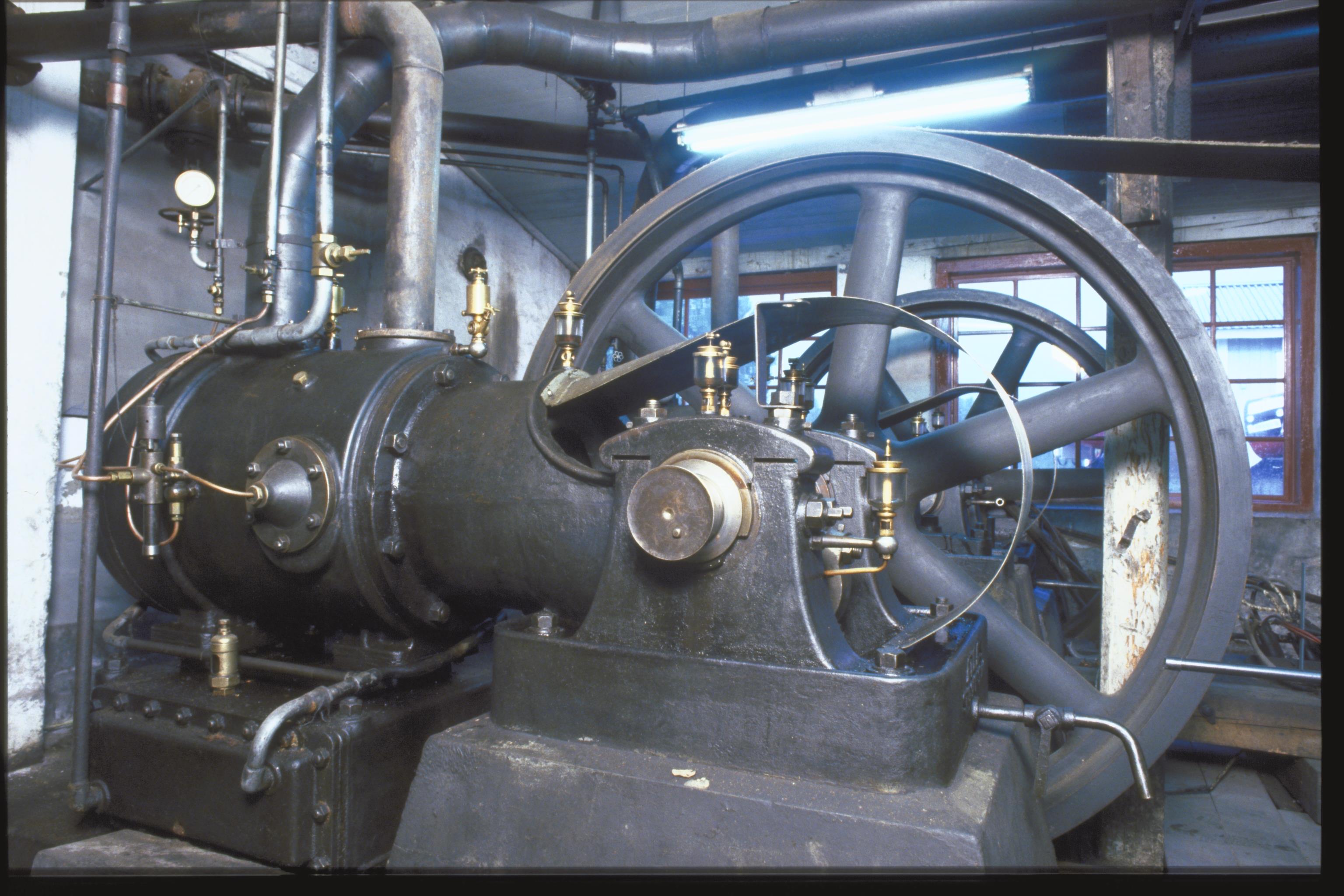 Interiör från gruvlaven. Maskindetaljer, ATLAS-kompressor från 1910.
