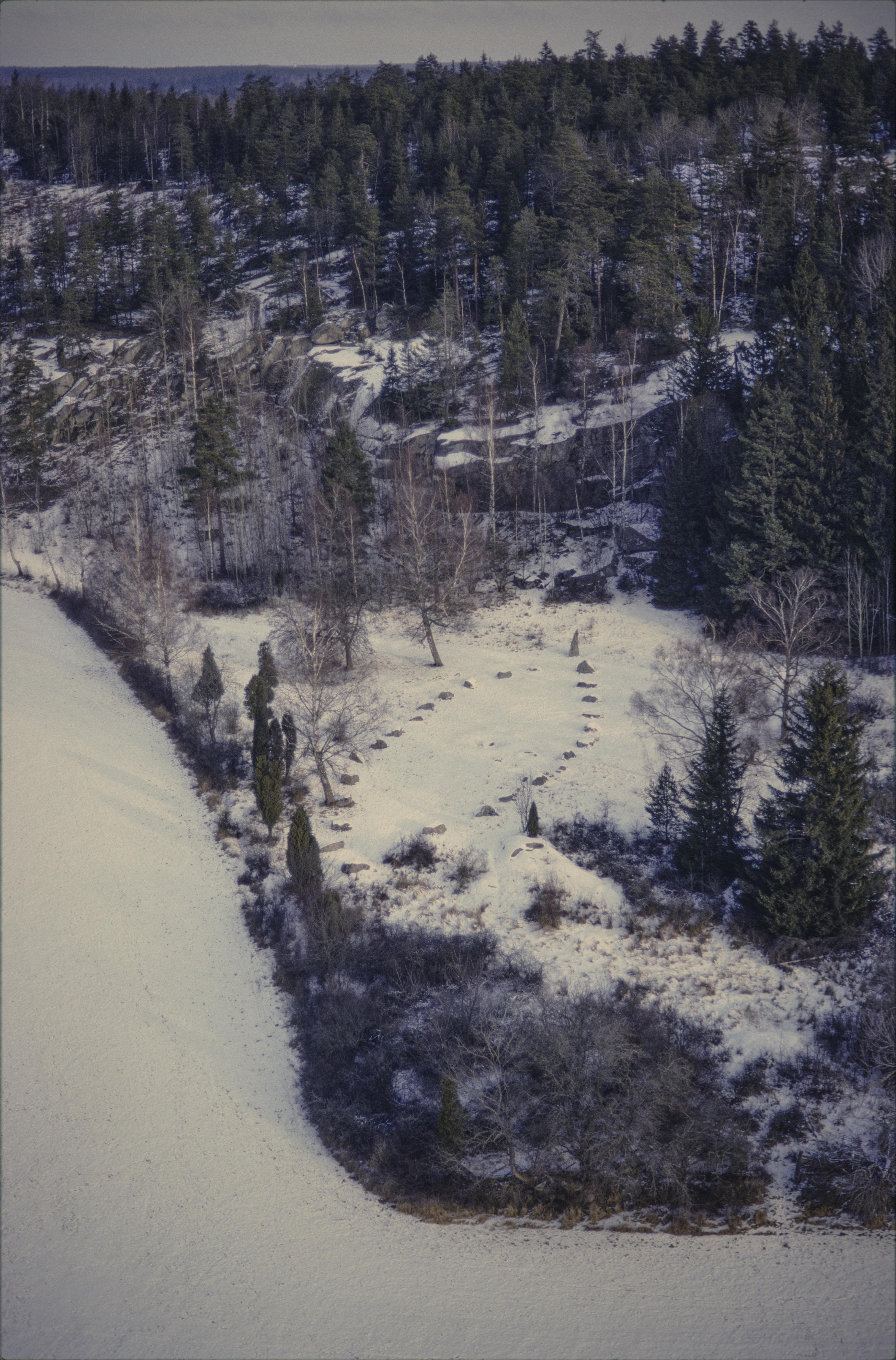 Runsa gravfält med skeppssättning RAÄnr Ed 1:1. Bilden är tagen mot (väderstreck): N