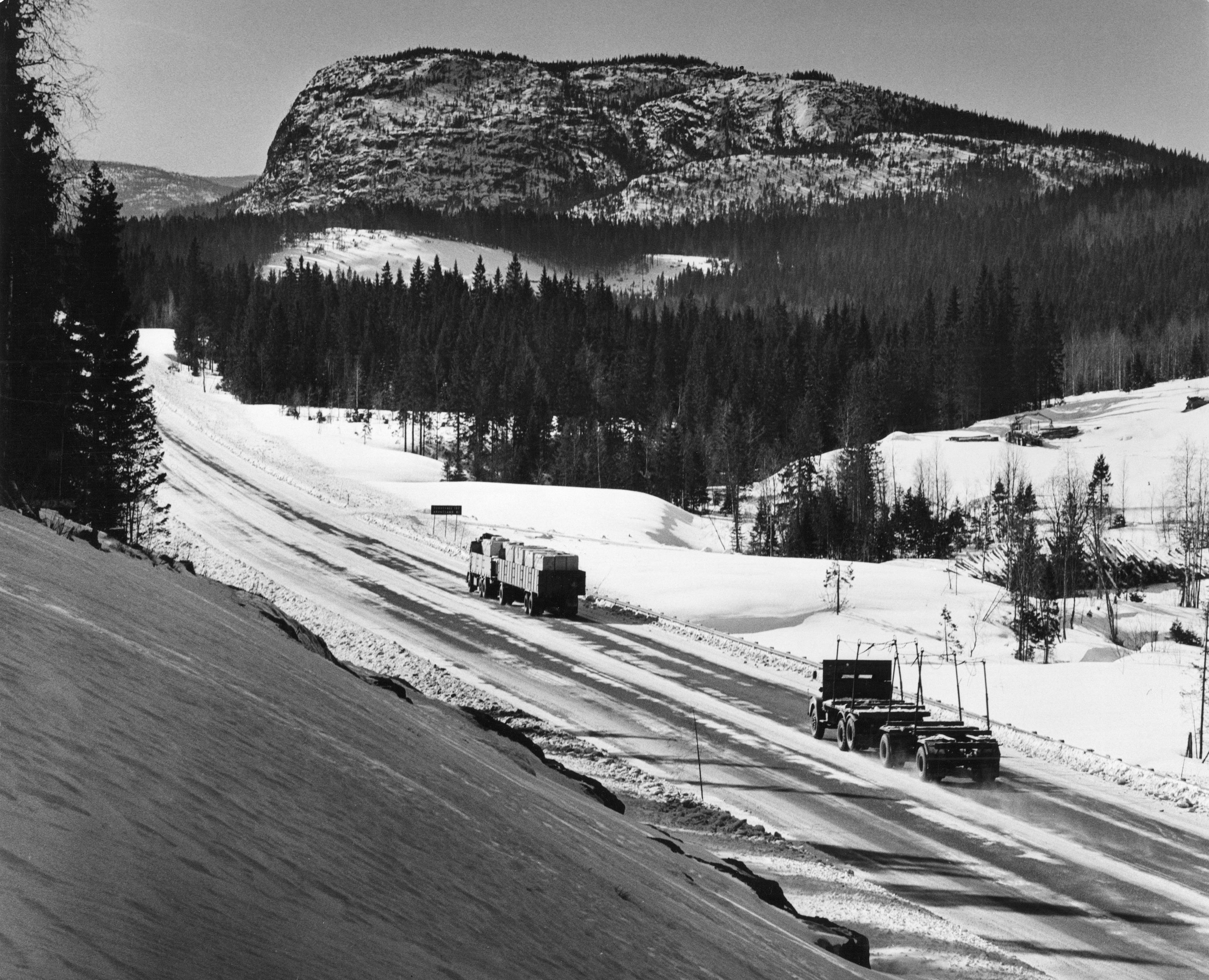 E4:an vid Skuleberget. Bilden troligen från slutet av 1960-talet. Ingår i Höga kustens världsarvsområde.