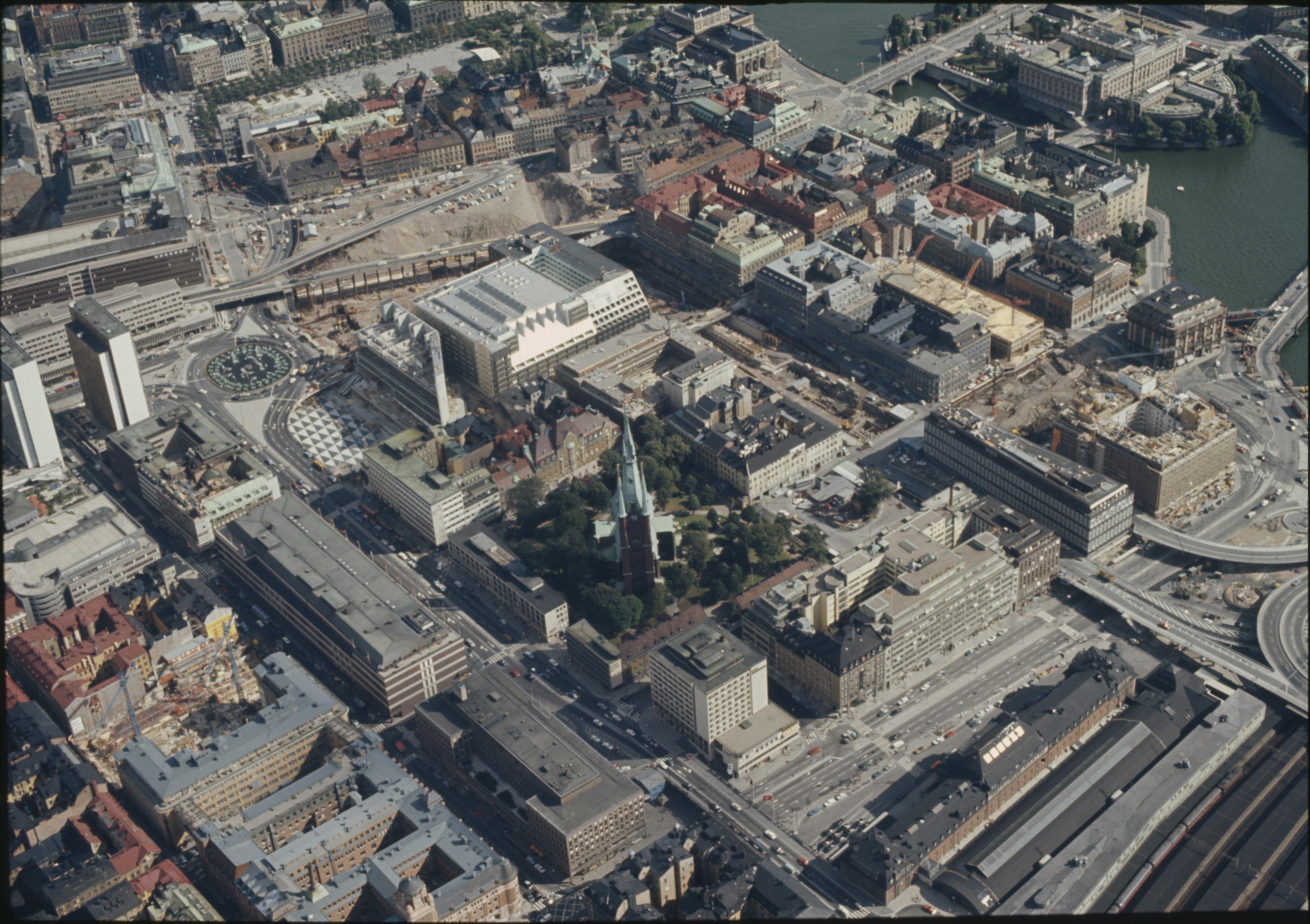 Riksdagshusbygget, Sergels torg och Brunkebergstorg. Klara kyrka. City. Rivningar.