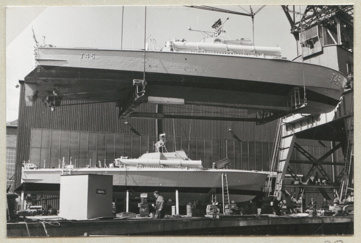 Torpedbåtsseriebyggnad-T45 sjösättes. mars 1957