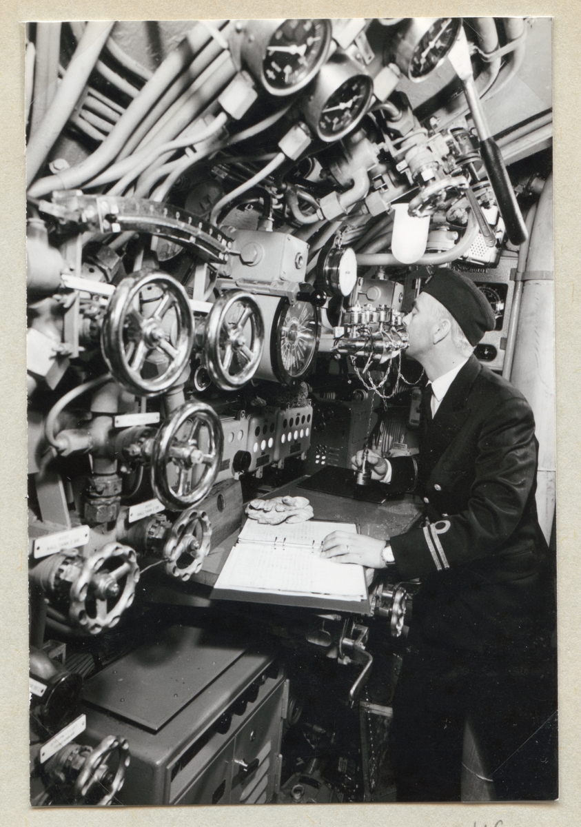 Ubåten Illern dykofficer i manöverrummet, maj 1959.