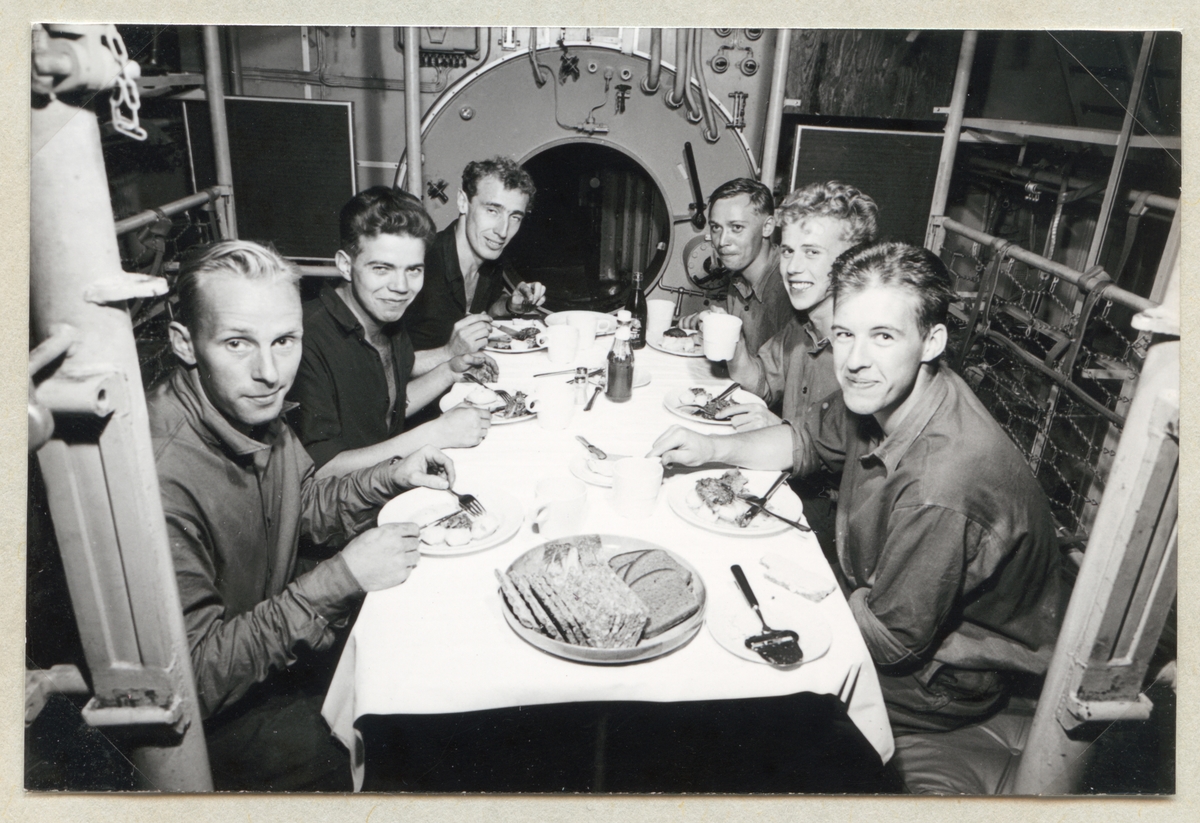 Glatt humör under skaffning i Illerns torpedrum, maj 1959