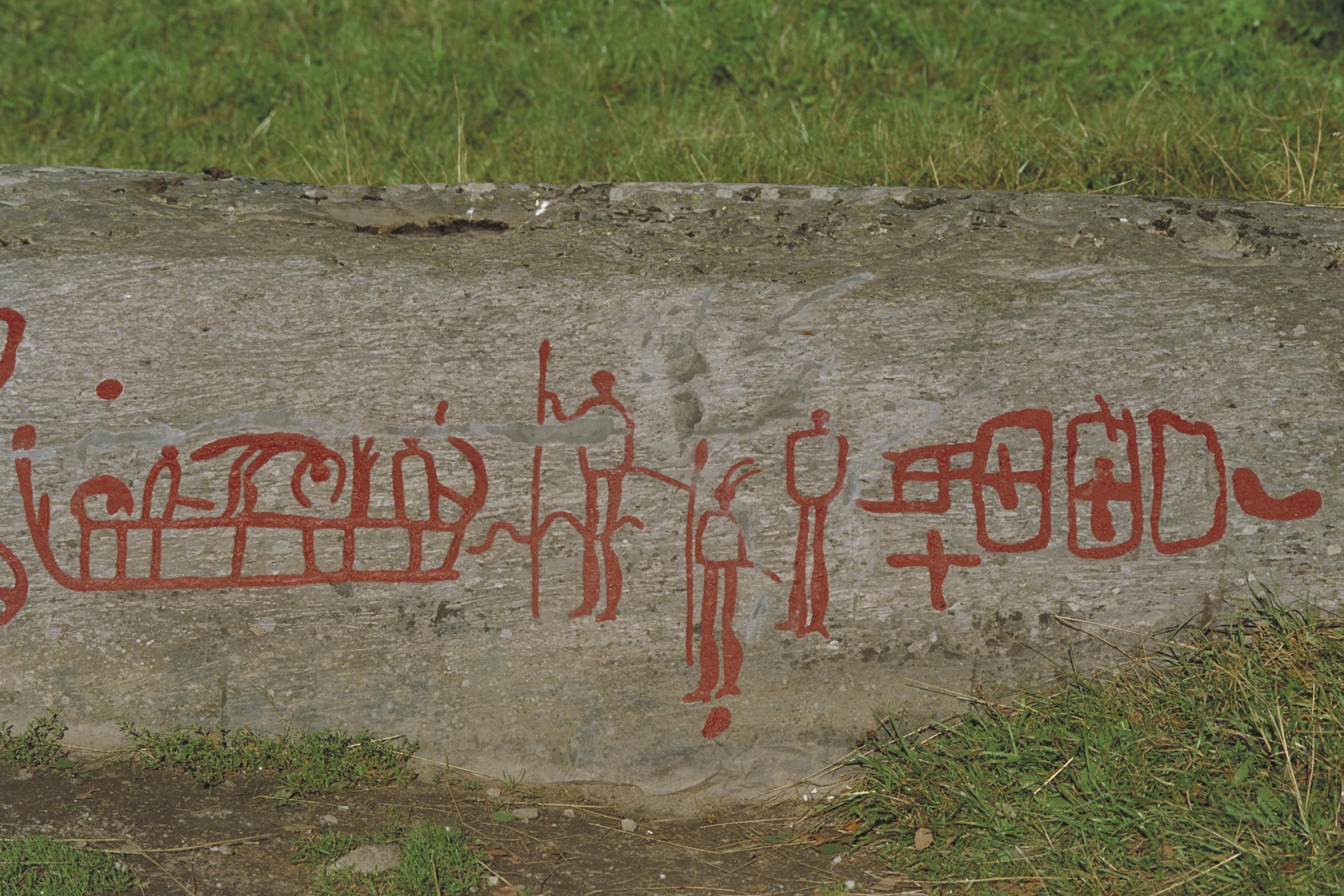 RAÄ-nummer Tisselskog 11:1. Processionshällen. Skepp med voltigör, människofigurer med spjut och fotsulor.