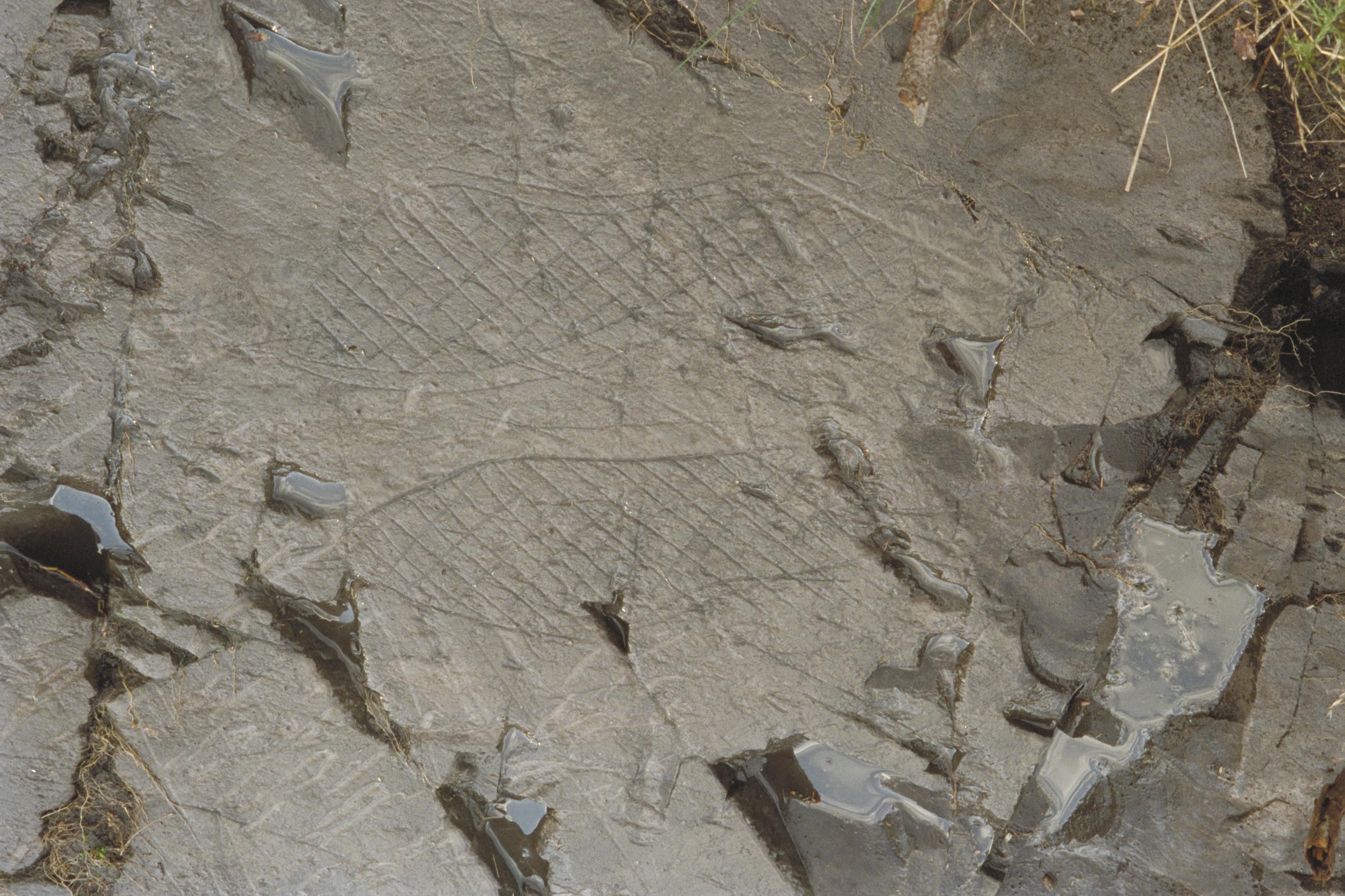 RAÄ-nummer Tisselskog 7:3. Fotavtryck, troligen moderna ristningar.