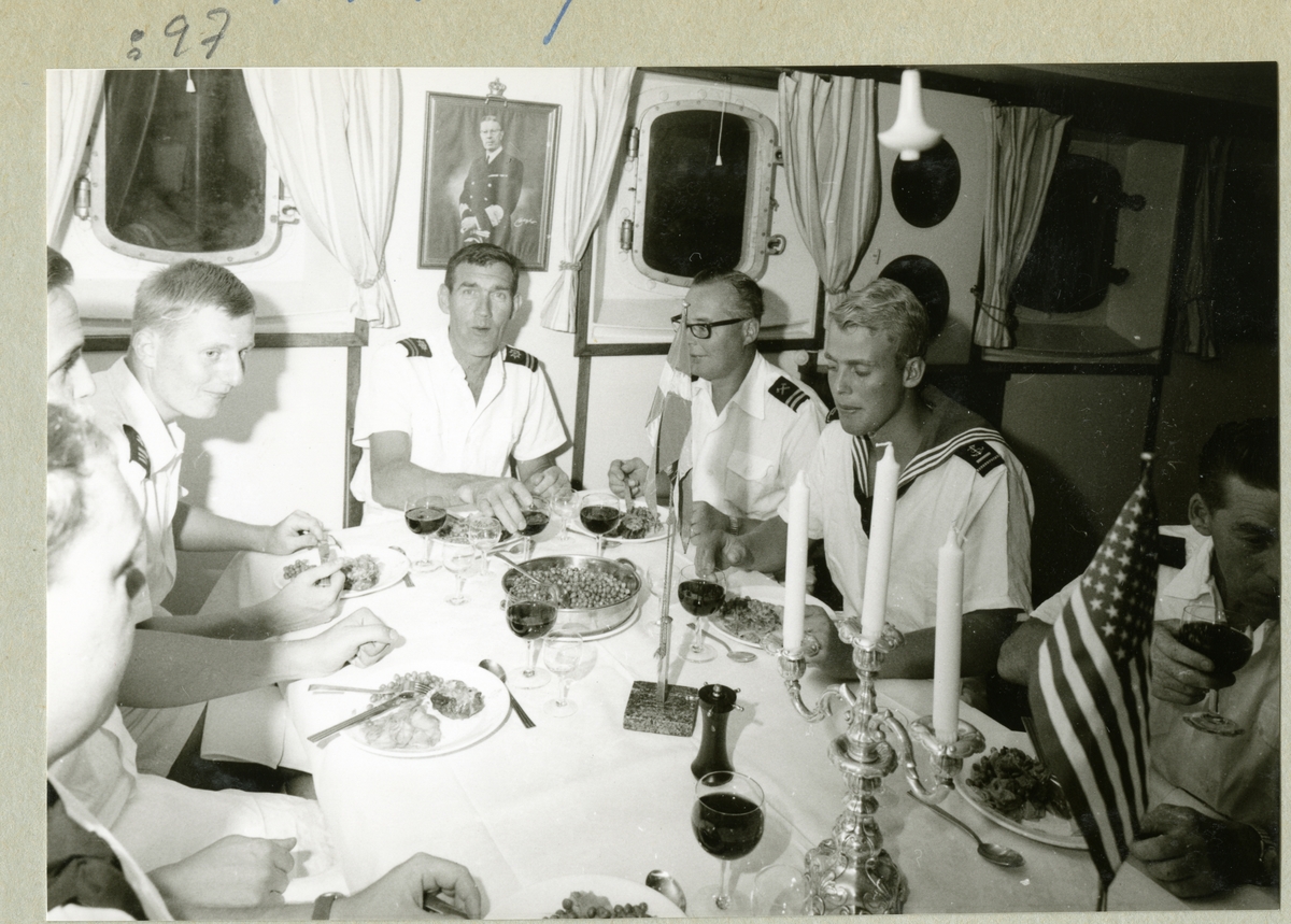 Titel: Fritid ombord. Middag i mässen