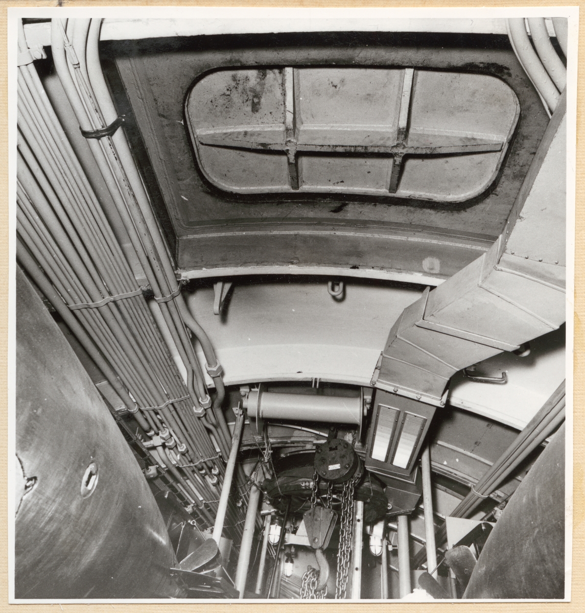Torpedrummet. Taket akter om torp.mag. sett förifrån.