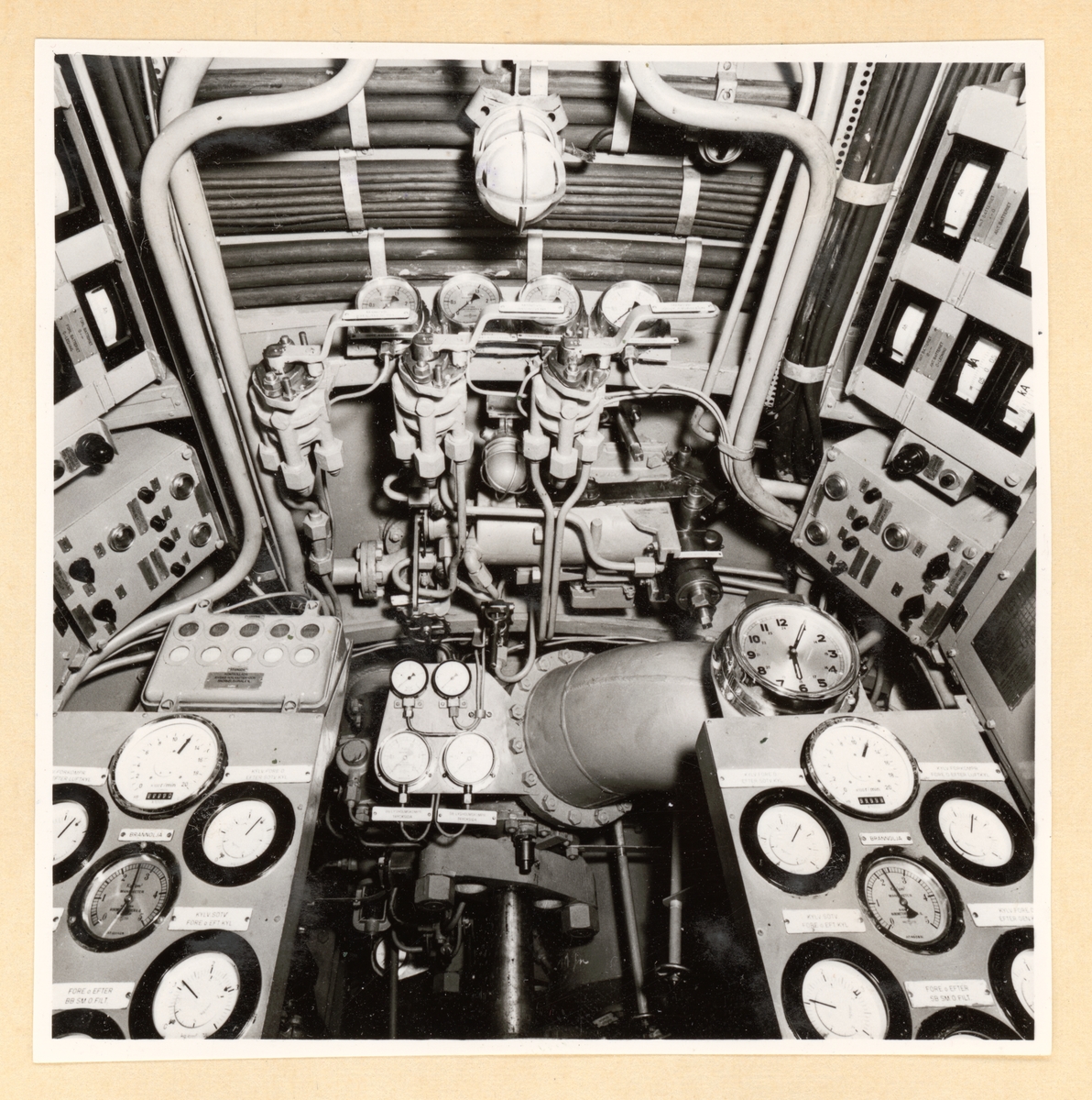 Dieselmotorrum. Taket och manometertavlor på man.platsen.