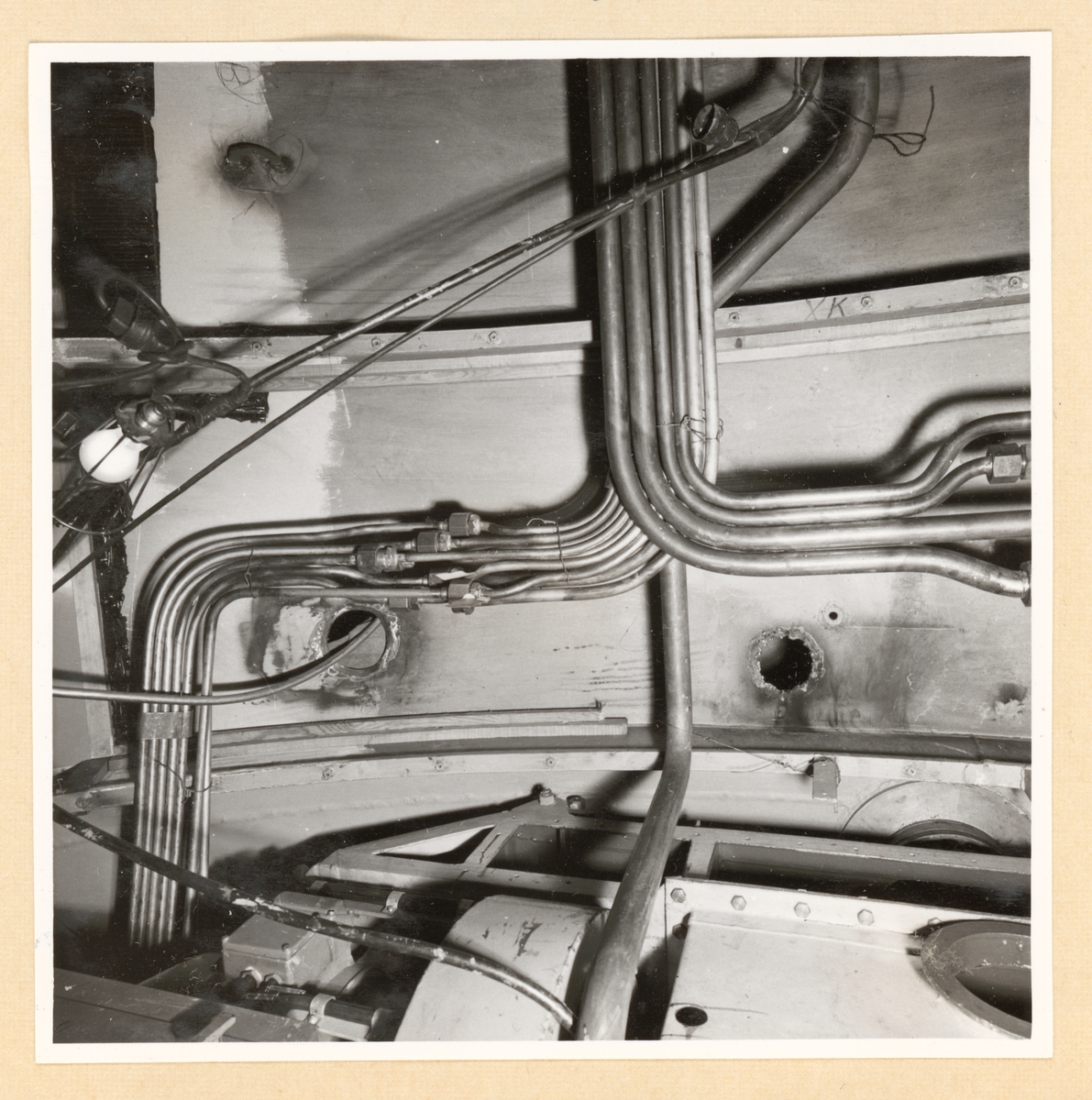 Officersrum. Rördragning i taket vid fläktar.