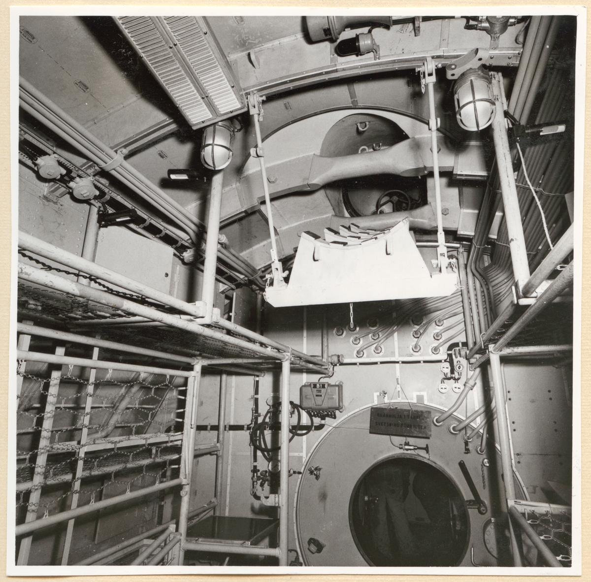 Torpedrummet. Aktra skott och taket sett förifrån.