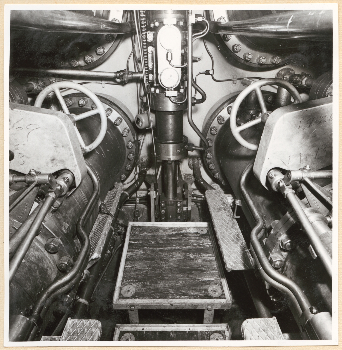 Torpedrummet. Förliga skottet och durken mellan tuberna sett akterifrån.