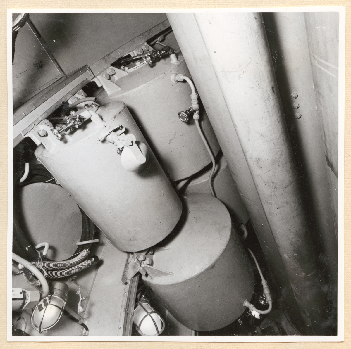 Torpedrummet. SB sida (bordvart torp.mag.) taket sedd underifrån.