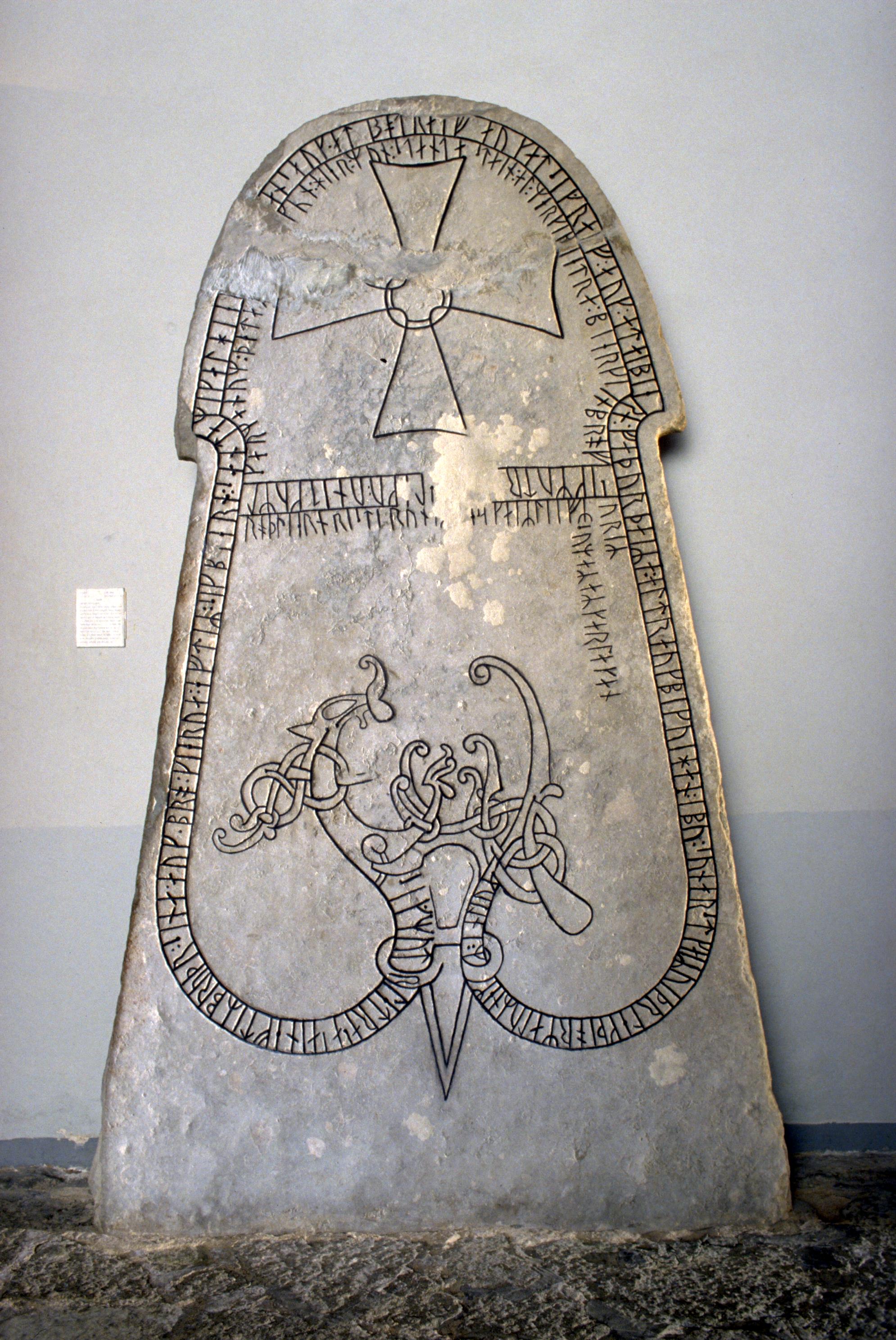 Beskrivning: Stenen är rest av Sigmund över hans bröder och far. Gairvat har gjort ormslingorna och Rodbjärn ristade. Stenen skall stå lysande på berget.
