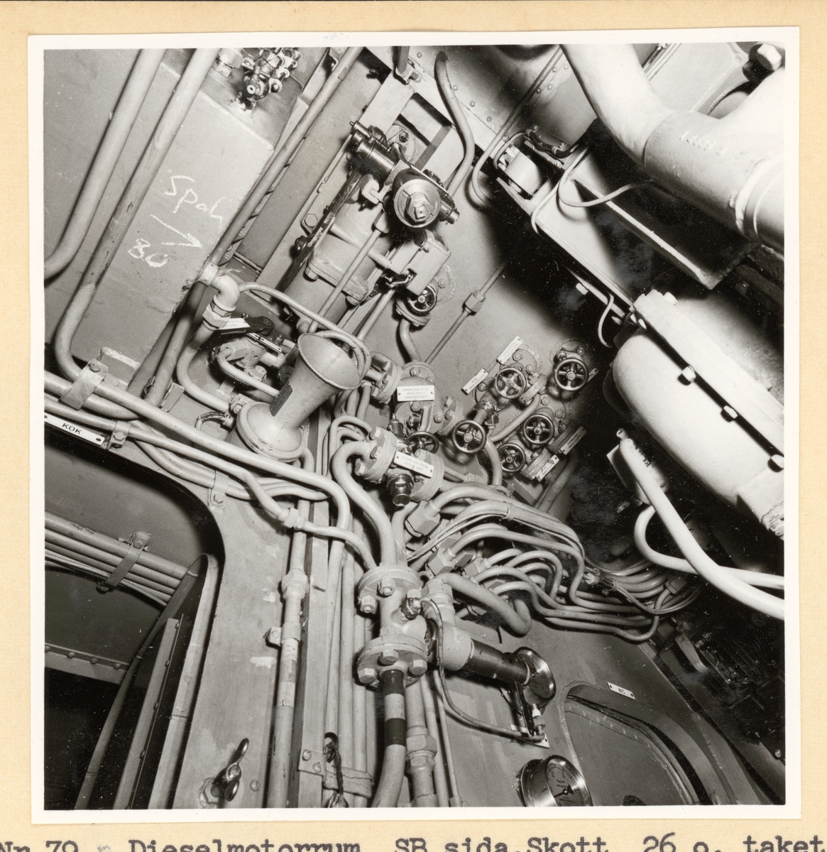 Dieselmotorrum. SB sida. Skott 26 och taket sett akterifrån CL.