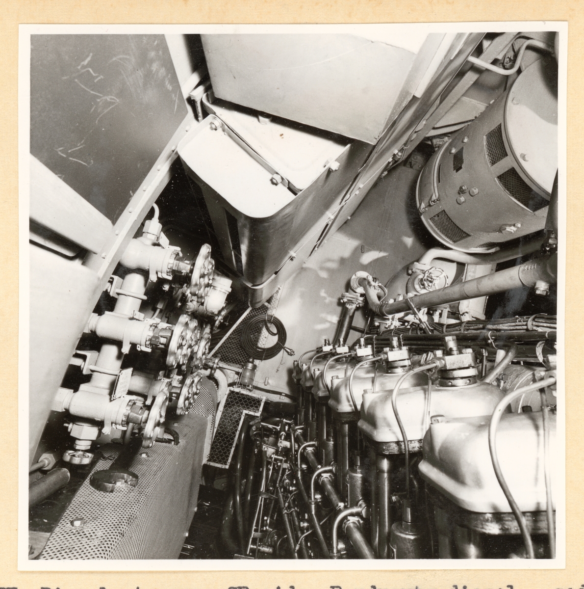 Dieselmotorrum. SB sida, Bordvarts diesel, sedd förifrån.