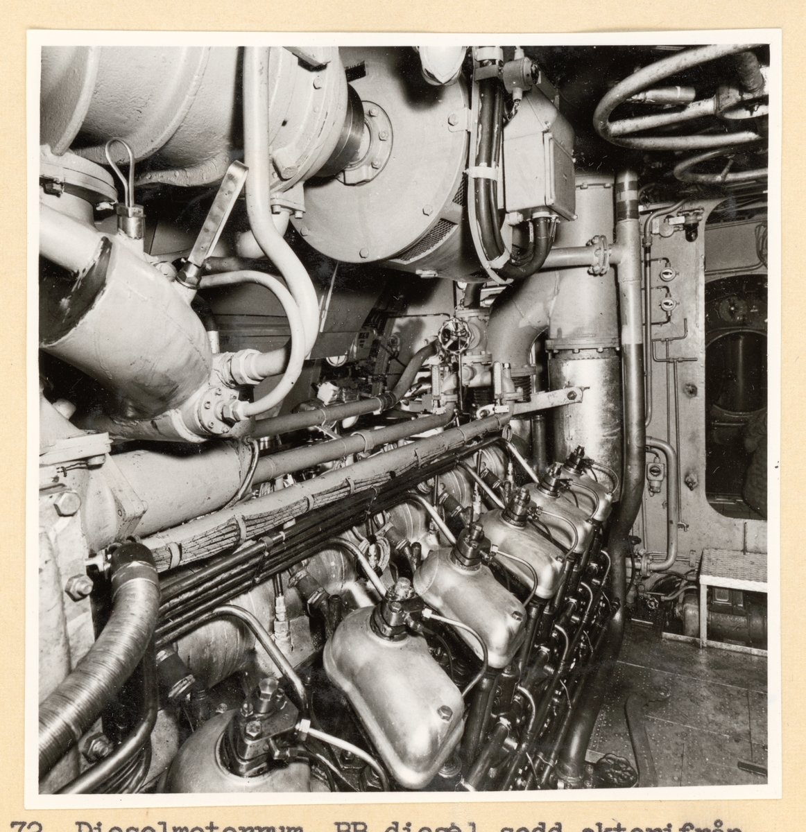 Dieselmotorrum. BB diesel sedd akterifrån.