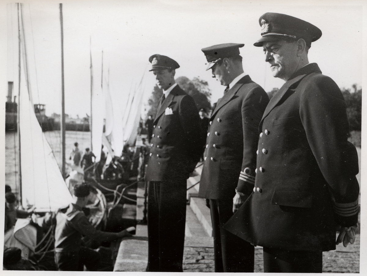 Befäl vid Kungsbron. Män i segelbåtar.