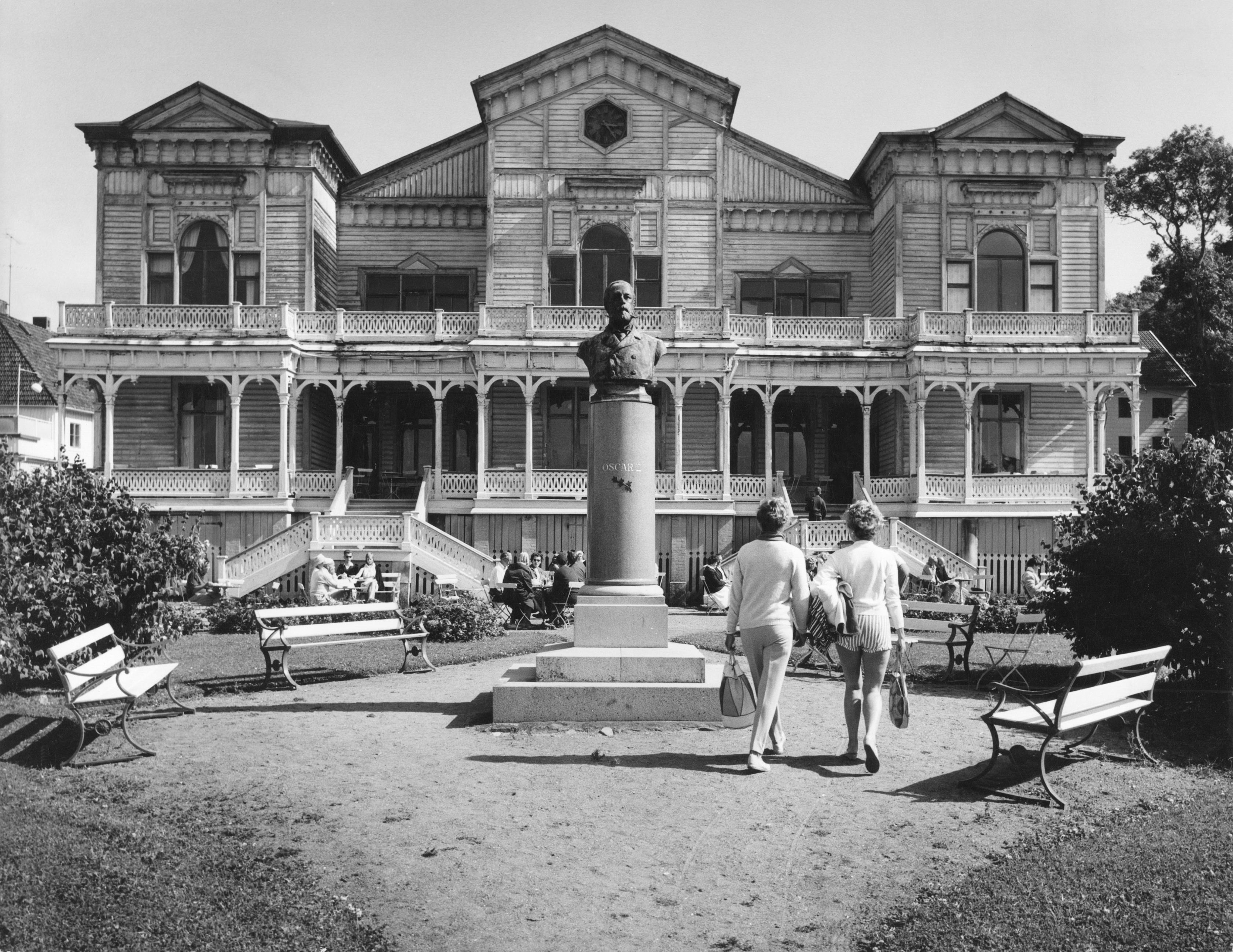 Societetshuset nere vid Fredriksborg. (Marstrand 50:1). Byggnaden uppfördes 1886 efter ritningar av Adrian Peterson, och ligger belägen på Kungsplanen 1. Statyn framför byggnaden är en brons-byst föreställande Oscar II (Marstrand 50:2).