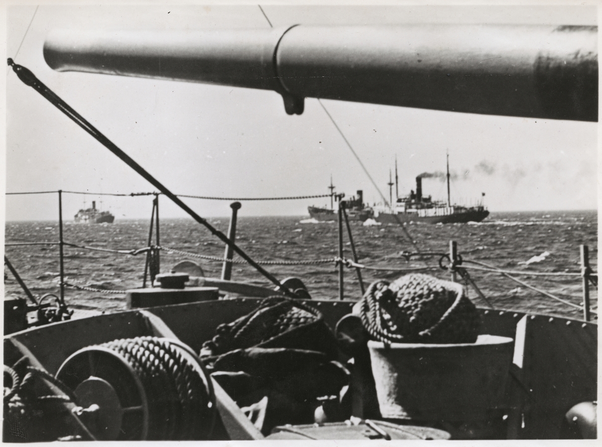 Titel: Utsikt från pansarfartyg mot 2 stycken större tankfartyg.